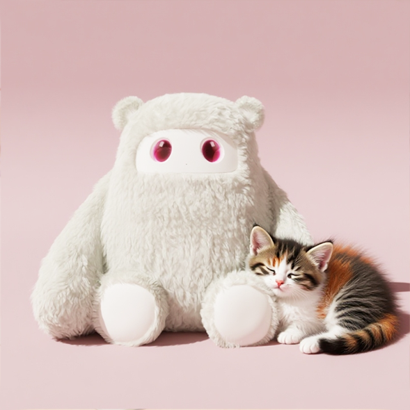 Psychology and physiology have proven that pet cats’ behaviors and interactions just meet our deep-seated needs for “comfort, relaxation and connection”: Stroking their soft fur and listening to their purrs can relax the body and regulate hormones, and occasional interactions can even break negative thoughts. MoYa, however, simulates breathing, makes purring sounds and hugs you actively, turning this cat-like healing into everyday companionship.